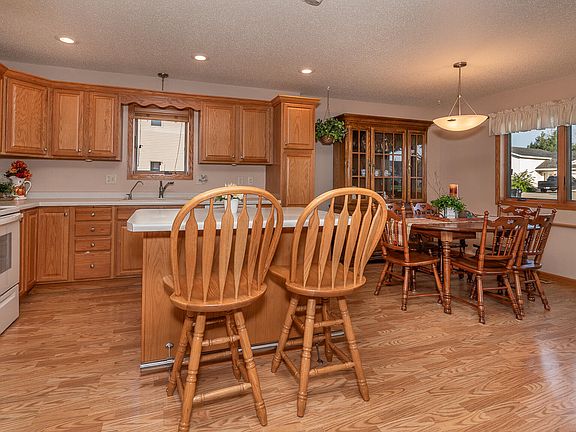 The kitchen, with its center island and adjoining dining area, provides ample counter space to cook, entertain, and gather for cherished memories.