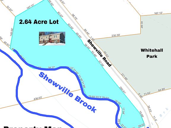 Wonderful opportunity to own a three bedroom and two full bath raised ranch style home, located on a private 2.64 acre lot. This home sits directly adjacent to Shewville Brook, with over 800 feet of direct frontage. The home features many updates throughout, including hardwood floors, newer appliances, updated baths, a Buderus furnace, central air, newer vinyl siding, and much more. The lower level has a family room with a wood stove and additional finished space which is currently being used as fourth bedroom. There is also a one car, under house garage, garden space, huge front patio, a chicken coop area, and plenty of nature to enjoy. The home is not located in a flood zone and sits high above the brook. The brook flows consistently through the seasons, maintaining its water level, and leads directly to a waterfall. It offers fishing, kayaking, and canoeing opportunities for the nature lover. There are also public hiking and walking trails available to explore at Whitehall Park, located directly across the street from this home. Come take a look and explore this unique property.