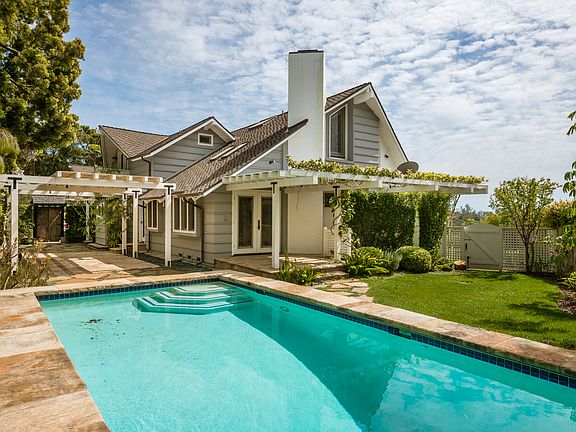 DEAL ALERT! BIG BEST BUY FOR OCEAN VIEWS AND HIGH END QUALITY! European country style home situated at the end of a private lane with privacy and seclusion. This beautifully rebuilt home has 4 bedrooms and 3.50 baths on an approx. 1/2 acre of lawns, gardens, pool, and guest quarters. Easy care grounds. Pretty Ocean, Island, City Lights and SB Seminary Views. The home has high quality materials and details throughout the home.There are beautiful distressed wide barnwood floors all throughout the home. The living room has high ceilings with lots of light. The living room has high ceilings with lots of light, custom built-ins and rod iron railing, large fireplace and French floors that open to the ocean views and the front patio trellis sitting area. Custom heavy wood doors and barn style sliding doors. The kitchen has a large island, farm style sink, 6 burner Viking stone, big subzero and Miele dishwasher.The 2nd floor has a family room, den, laundry room and office with distressed wide barnwood floors, vaulted ceilings, and large windows with plantation shutters. The office is big enough for 2 work stations, with custom cabinets, ceiling fan, air conditioning and French doors to a view deck. A large Asian carved antique door opens up to the bedroom wing area. The hallway leads to the master bedroom and two guest bedrooms. The master bedroom has high vaulted ceiling, built in cabinets and French doors that open to view balcony with ocean, island, and Santa Barbara seminary views. The master bathroom has many custom details, hand-picked tile flooring, shower large enough for 2 people, skylight, high ceilings, granite counter tops cabinets, 2 sinks, soaking whirlpool spa bathtub, 2 walk in closets with built in cabinets and storage. Visit the virtual tour https://youriguide.com/991_tornoe_rd_santa_barbara_ca