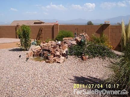 LARGE WATER FALL, 10X40 COVERED PATIO, 2 CORNER PATIOS ONE RAISED, COMPLETE LANDSCAPED, LARGE MASTER BATH W/ DOUBLE SINKS, CABLNETS,WALKIN SHOWER, WALKIN CLOSET, OPEN FLOOR PLAN W/ HIGH CEILING, KITCHEN W/LARGE ISLAND DISHWASHER, MICROWAVE, DISPOSAL, REFRIGERATOR, ELECTRIC STOVE, WATER FILTER SYSTEM,CABLE TV 14 SOCIAL CENTERS AND 8 OR MORE GOLF COURSES IN AREA. GREEN VALLEY A GREAT RETIREMENT AREA. PRICE HAS BEEN REDUCED. I HAVE ADDED MANY EXTRAS TO THIS HOME. CALL FOR MORE INFORMATION.Additional property info: http://www.forsalebyowner.com/listing/2WSD7?provider_id=28079