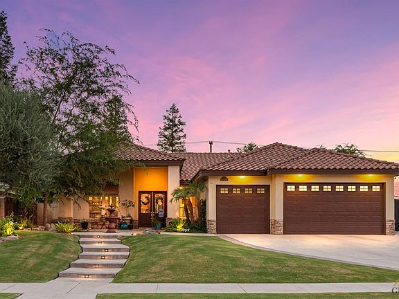One of a kind home in the gated area of Southern Oaks, it's a must see. This house sits on a cul de sac with a 3 car garage and additional parking on the side behind a large iron gate. Custom wood like flooring in a herringbone/chevron pattern with larger baseboards. The kitchen has granite counter tops and stainless steel appliances. Custom bar in the front of the home, great for entertaining. Double doors lead to the backyard where you have a sparkling pool, designed for volleyball and spa that sits above with a waterfall that flows down, if you're looking in Stockdale High District don't miss out on this property