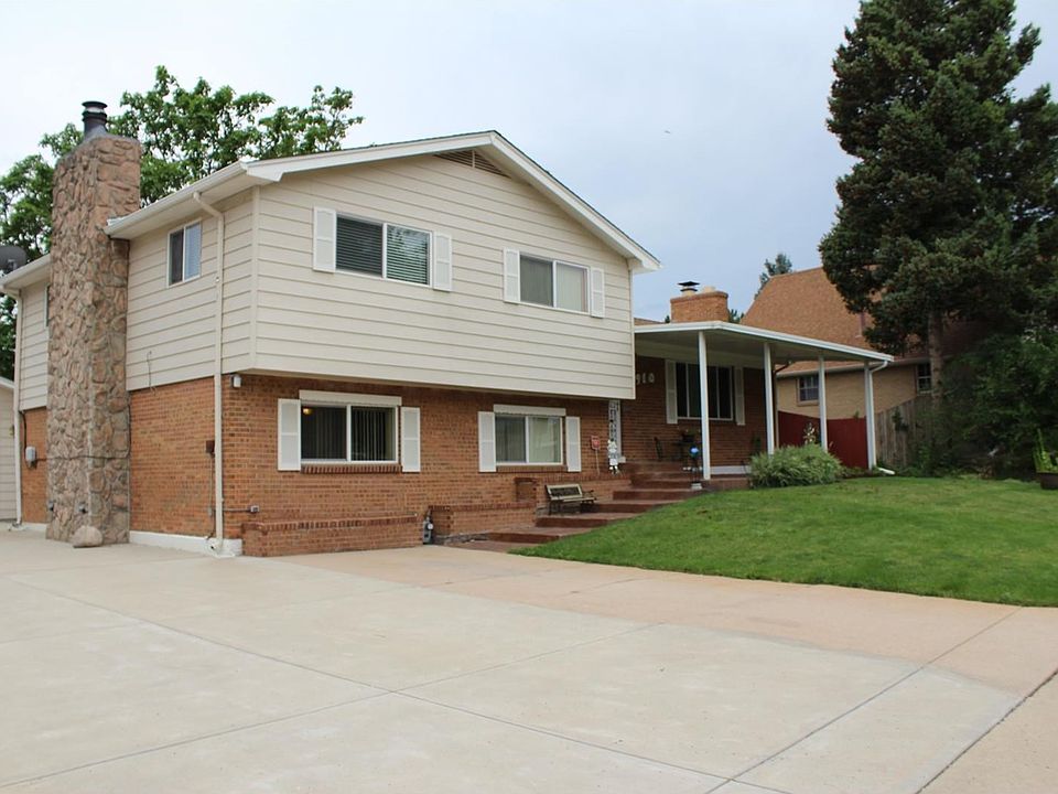This wonderful three bedroom home offers ample space for indoor and outdoor living! Beautiful covered front porch with stamped concrete! Gleaming hardwood floors on the main level. Newer vinyl windows and roof. New water heater. Spacious bedrooms, living room, and family room. Two fireplaces! Gorgeous mature landscaping and covered back patio. Convenient location with easy access to I25.