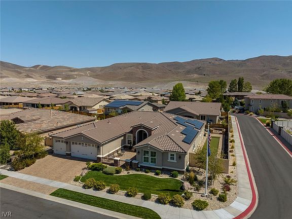 Power Up and forget high utility bills while living very comfortably in this south Reno Damonte Ranch home. Massive Buyer benefit with the owned solar array and 2 Tesla power walls as part of the home purchase. This is a Toll Brother's Saddle Ridge community top pick! This gorgeous single level home sits in a premier location on a quiet corner lot with little traffic, big views and wonderful privacy! Gorgeous hardwood floors, upgraded cabinetry, slab counters, stainless appliances & plantation shutters are just a few of the fine finishes you'll find here. Outside, enjoy a covered patio, custom seating area, bocce ball court, water-smart landscape & lighting, bubbling water feature and private courtyard! See this property in the evening and enjoy watching sunset and twilight with the ambience this home provides. See this property in the evening and enjoy watching sunset and twilight with the ambience this home provides. Almost new hot tub included in sale at no value or warranty.