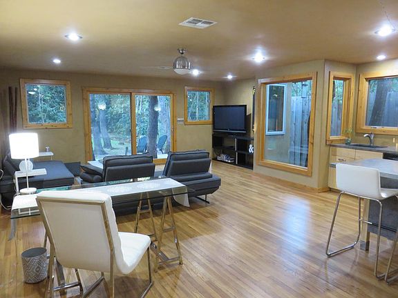 This beautiful guest house is fully furnished like a modern, quaint Inn nestled in its own private garden. All bills paid. Includes wifi, bi weekly cleaning and lawn care. Only 2 miles to Lake Austin, 4 miles to the Hill Country Galleria, 8 miles to Zilker Park, 11 miles to downtown Austin, 25 minutes to airport...You can't beat the Location! It is completely outfit w/ full kitchen, delux linens for you and guests, stream your favorite TV shows on 50" LG TV... It is ready to go. A private, quiet retreat! Antique oak floors, Venetian plaster walls, travertine bathroom, garden tub, full sized washer/dryer, full sized refrigerator freezer w/filtered water, tempurpedic-like king sized bed, walk in closet, writing desk, 2 modern, comfy sofas double as twin beds or chaise lounges when you have guests (all with delux bedding), filled with natural light in every room, or lovely LEDs at night, picture windows throughout. All bills paid including wifi and lawn care. Credit and background check. Small, well behaved pet may be considered. Shorter term lease may be considered with additional monthly fee. Please note...Zillow's "zestimate" does not consider furnishings, furniture, full kitchens and linens, nor lawn care, biweekly cleaning and all bills paid, gated, landscaped etc in their "value estimates".