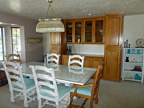 Custom home in highly desirable south side Pinon Hills! Come check out the amazing views from one of the two decks. This split level home has 3 bedrooms, but the gorgeous sun room(with 2 skylights!) has been used as a 4th bedroom. The master bedroom has a retreat area that leads to one of the two decks,a double sided fireplace and a huge walk through closet. The master bathroom has been almost completely remodeled with beautiful porcelain tile shower, floors and tub surround. The country kitchen has it all! An eating nook,double wall ovens,an island with cooktop stove,walk in pantry, double sink with garbage disposal, counter height bar area, and a dishwasher. The inside laundry/mud room has plenty of storage space. The dining room has large windows, and amazing built in cabinetry. The other full bathroom has also been fully remodeled with porcelain tile shower and floors, and two gorgeous console sinks.There is a huge floor to ceiling bookshelf with a computer desk just outside of the master bedroom, that overlooks the fabulous WET BAR!All bedrooms have ceiling fans, as well as two in the living room! The finished 3 car garage is extra deep and has plenty of space, and there is an extra storage room to the back of it as well! The front of the property has trees and bushes to give you nice privacy from the road, and the back is fully fenced with plenty of room for animals, a playground, a pool.....anything your heart desires. You won't find another home like this one!