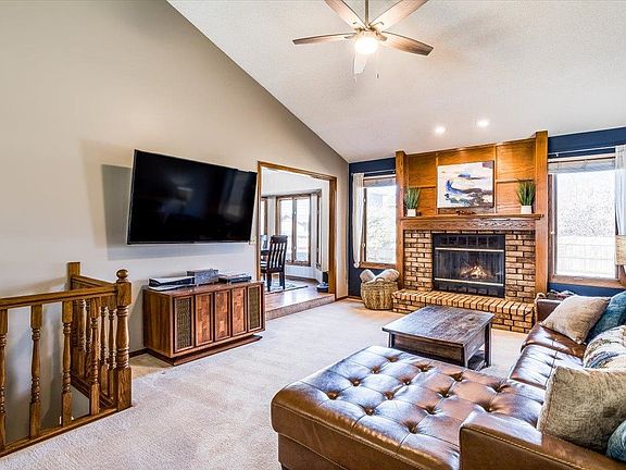 All you have to do is move in to this 4 bedroom, 3 ½ bath home located on a treed lined picturesque neighborhood! Outside you’ll love the hip roof and inviting brick front. Inside you’ll find updated colors that have been freshly painted, new lighting, new faucets, new hardware, new flooring in upstairs baths, along with new carpet and updated bath in the basement. Kitchen is spacious and features loads of cabinets along with a built in desk area, and comes equipped with range/oven, space saver microwave, dishwasher, and disposal. This home offers so much room to spread out with both eating space in the kitchen as well as a formal dining area. Relax in the large living room with vaulted ceiling and enjoy the brick fireplace surrounded by windows. The primary suite won’t disappoint you with the large room size to accommodate all your oversized furniture, has a separate shower and corner tub, double bowl vanity, and large walk in closet. Check out the huge storeroom/workshop in the basement! In addition basement has large family room with another fireplace, wet bar, bath, 4th bedroom with a walk in closet, and an additional smaller storage closet with shelving. Just off the kitchen you’ll love the large covered deck/patio. Yard is fenced and loaded with trees. The oversized garage is fully finished with sheetrock/paint and just inside the family entry from garage you’ll find a very convenient ½ bath which is a rare find! Main floor laundry for convenience. Roof is impact resistant. HVAC is new with a smart thermostat, installed just last year! There’s so much to appreciate in this home, come take a look today! Information deemed reliable but not guaranteed and may change without notice. Buyer responsibility to verify schools and any other features considered.
