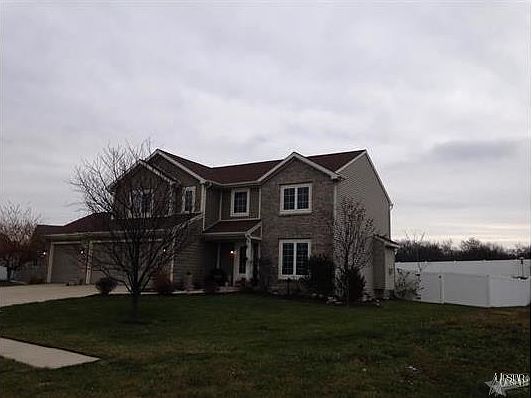 Lots of space in this beautiful 4 bedroom home in Sycamore Lakes! Over 2,200 sq ft upstairs plus an additional 800+ sq ft in the finished basement! Open floor plan with large rooms. Master Suite w/ walk-in closet includes a separate stand up shower and corner jet tub plus double vanity. Den with glass french doors would make a perfect home office or play room. Nice yard with 6 ft vinyl fence. 3-car garage. Lancia built. Outside city limits! Culligan water softener. 66-gallon water heater. Must see this large home to appreciate!