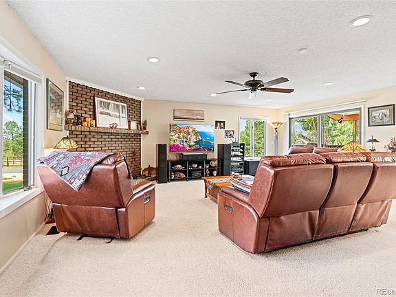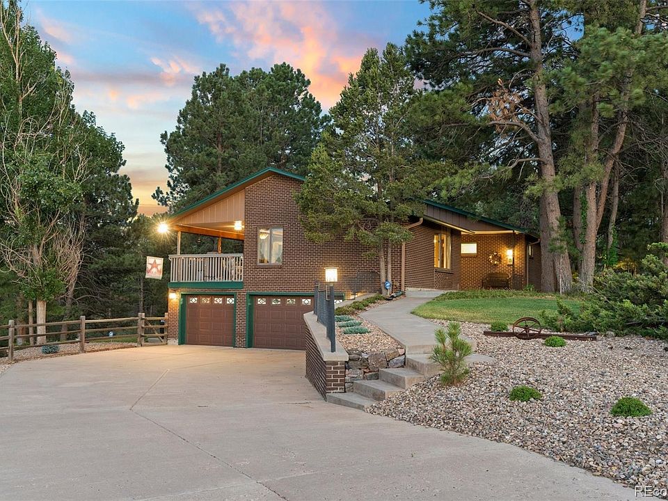 $30,000 PRICE REDUCTION! Welcome to The Pinery's newest gem- an impeccably maintained 3 bedroom + office/flex room, 2 bathroom 3,000+ sq.ft. west-facing walkout ranch nestled on 2+/- Partially Fenced Acres with mountain views!! YES... PLEASE!!!! The owners have loved this home for 26 years and the immense pride of ownership is evident everywhere you turn. When you enter this beautiful brick home, you will immediately notice the cozy gas log fireplace anchoring the family room perfect for those cold, winter nights and the beautiful picture window with peek-a-boo mountain views. The family room walks out to a spacious and covered trex deck which has direct access to the backyard and is perfectly situated where you will enjoy entertaining family and friends and al fresco dining during the warm summer nights. Family gatherings are a breeze in the spacious dining area right off the kitchen that features a huge walk-in pantry, under-counter lighting and has storage galore! Completing the main floor are two large rooms- one of which is currently being used as an office/laundry room and the other is the spacious primary master suite which boasts an enormous walk-in closet and full bathroom with dual vanities and lots of natural light. Venture downstairs to the finished basement where you will find two additional bedrooms, a full bathroom with dual vanities and large soaking tub, and an additional living room area perfect for taking in a game with friends, a man-cave, mother-in-law quarters or a teen living at home perhaps looking for a bit of extra privacy. The basement walks out to the backyard as well as the oversized 3 car garage with a convenient exterior access door, interlocking flooring, a welded Gladiator workbench with both mounted and rolling cabinets, Elfa shelving, track mounts and a MAX JACK car lift to boot! This home offers the quintessential Colorado lifestyle on acreage so hurry and book your showing today!