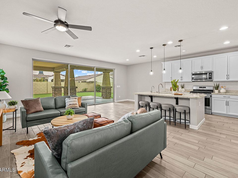 door. Inside you'll find a well-appointed kitchen with white cabinets and beautiful granite countertops. This home also features a private guest suite with it's own bathroom downstairs. Upstairs you'll find the primary suite and three more bedrooms, along with a HUGE loft area. This home also features spray foam insulation throughout - meaning lower energy costs for you! Eastmark also gives you access to amenities like the seasonally heated, resort-style pool, Steadfast Farm & Diner, more than 75 neighborhood parks and community events. Come see why this has been the top-selling community in Arizona!