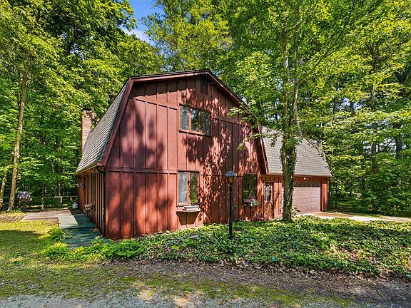 . Rare opportunity to own FIVE private, heavily wooded acres, nestled alongside beautiful Cedar Creek. TONS of mature native trees, wildflowers galore, and plenty of wildlife activity, this enchanting property offers the perfect balance of privacy, and convenience. This 3 bedroom, 2 bathroom house is an updater's dream, providing "good bones" and endless potential for customization and personalization. A large 25X13 bonus room upstairs adds even more flexibility with a renovation. The rear of the property has access from Amstutz road via a second driveway and showcases a 24X18 building perfect for a workshop, studio, camping lodge, or additional storage. Conveniently located in Leo, and in the popular East Allen County School district. City sewer and water are available. Don't miss this opportunity to create your dream home in a tranquil, natural setting.