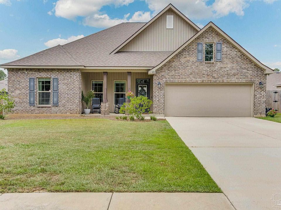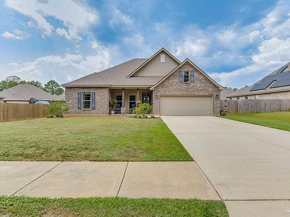Discover your dream home in this stunning new listing on a 1/4 acre lot!! This beautifully crafted all-brick house boasts 4 bedrooms and 2 bathrooms, offering ample space for your family to thrive. With 2,314 square feet of thoughtfully designed living area, you'll find yourself immersed in comfort and style. Step into the heart of the home, where the kitchen shines with white shaker cabinets, gleaming stainless steel appliances, and elegant quartz countertops. The island and eat-in area provide the perfect spot for casual dining or entertaining. Prepare to be wowed by the open floorplan, high ceilings, and an abundance of natural light that creates an inviting atmosphere throughout. The primary bedroom is a true retreat, featuring a luxurious en-suite bathroom complete with double vanities, a separate shower, and a garden tub for ultimate relaxation. A spacious walk-in closet ensures ample storage for your wardrobe. Throughout the home, you'll find thoughtful touches like wood-like luxury vinyl plank flooring, wall-to-wall carpet in bedrooms, and stylish Venetian bronzed fixtures. The cozy fireplace and ceiling fans add both charm and comfort to your living spaces. Step outside to enjoy the extended back patio and covered porch, perfect for al fresco dining or simply unwinding after a long day. The privacy fence ensures your outdoor oasis remains your own personal sanctuary. This craftsman-style home doesn't skimp on the details, with crown molding adding a touch of elegance and a convenient mudroom for keeping things tidy. With its quality build and generous lot size, this property offers the perfect blend of comfort, style, and functionality. Close to I-10, Navy Federal Credit Recreation Center, shopping and so much more!! Don't miss your chance to make this house your home sweet home!