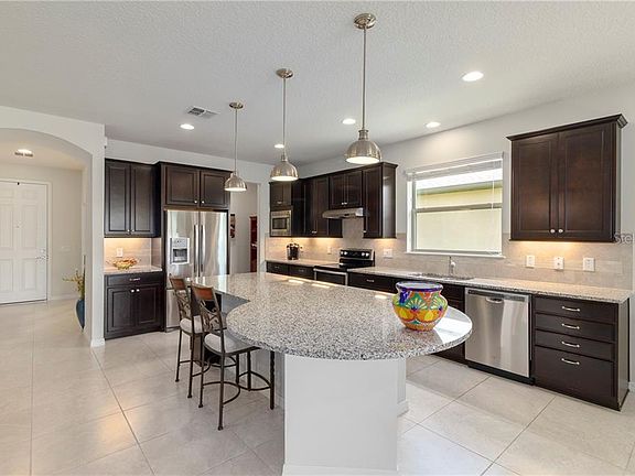 Don't let this one get away from you! This highly sought after and beautifully expanded Martin Ray model home is located in Stone Creek, a 55+ gated golf course community packed with amenities. Gracious living awaits in this open floor plan home featuring low maintenance tile floors, bonus den, and a climate-controlled sunroom for extra entertaining space overlooking priceless water views. The nicely equipped kitchen offers a center island with bar height seating, upgraded stainless appliance package, pendant lighting, granite countertops, and plenty of cabinet space for your storage needs. Master retreat features a spacious walk-in closet with a custom closet system and en suite bath with tile inlay walk-in shower and granite-topped double sink vanity. Two extra bedrooms for visiting guests, upgraded laundry room, whole home water treatment system, and a screened lanai for relaxing and enjoying peaceful sunsets and water view make this a home you won't want to miss. Don't forget about the fantastic community activities and amenities including a golf course, resort-style pools, health spa, trips and entertainment, and more!