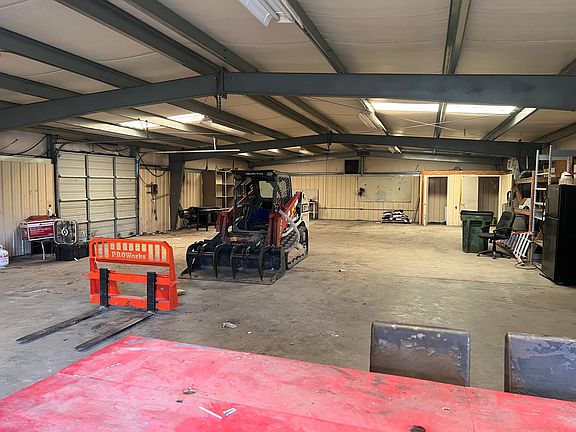 The open floor plan allows for easy customization, with plenty of room for equipment, storage, and work areas. High ceilings create an airy, accessible environment, while wide access points make moving vehicles, tools, and large materials a breeze. Ample parking ensures convenience for both staff and customers.