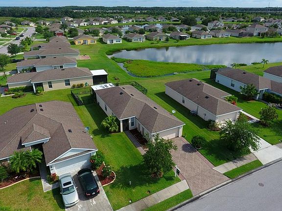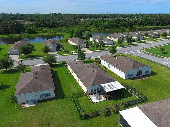 3 bedroom and 2 bathroom home with fenced yard and lake views. Loaded with great upgrades! Screened lanai and extra patio area, etched and stained driveway with wonderful landscape package. Great room plan with eat in kitchen, formal dining area and indoor utility room. Minutes to I-75, shopping and parks. Community pool, fitness center and playground. Truly a value packed home! Take the 3 D virtual tour and make it yours.
