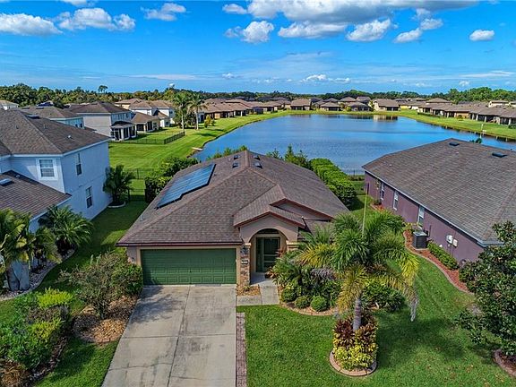Have it all in Harrison Ranch! This lovely three bedroom two bath home has a living/flex room and a family room to accommodate a growing family. No carpet in this one! All wet areas have tile and the living areas have a beautiful laminate floor. The kitchen is light and bright and has a large bar area and eat in area as well. This floor plan sets up nice for entertaining guests or just your family. The large family room is 17 x 15 and has views of the pond and surround sound pre-wire for movie night. The master bath has a garden tub and a shower with dual sinks and a huge walk in closet. Enjoy scenic views of the pond while in your very own hot tub while maintaining plenty of privacy with the lush landscaping. This home keeps getting better! This home is a completely SOLAR home. Electric bills are from $30 to $100 per month depending on the time of year. The Savings are Huge! Also Brand New Interior Paint!! Come make this home yours. Harrison Ranch is a highly desirable community with all the amenities and close to everything. Bring me an offer!