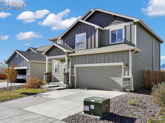 Stunning, turnkey, 4 bedroom home in the highly desirable Lorson Ranch subdivision, backing to jaw dropping mountain views, and open space. No neighbors directly behind this home! The minute you pull up to this adorable home, you will immediately be drawn to the curb appeal and views!! Walk up to the porch and step inside, soaking in the open floor plan and abundance of natural light. The main level boasts a large and open family room, kitchen, and dining area, perfect for entertaining and every day living. The kitchen features stainless steel appliances, staggered cabinets, an island, ample counterspace, a pantry, and breathtaking views. A half bath completes the first level, and don't forget to step outside into the backyard to take in the extremely private oasis out back! This is Colorado living at its best. Upstairs, you will find a large master retreat with a private ensuite bathroom with dbl vanity, and a large walk in closet. Three additional roomy bedrooms, a full bath, and an upstairs laundry space complete the upper level of this enviable home. If you are looking for extra storage, the entire home sits on a 3ft crawl space, creating the perfect location for storing seasonal decor, and all of those extra items that typically find themselves in a garage. Speaking of the garage, the 2 car garage protects your vehicles from Colorado's unpredictable hail and snow! Quick access to all Mesa Ridge Shopping amenities to include Safeway, Starbucks, Chick-fil-A, Lowes, and more, as well as Powers Blvd shopping, dining, and entertainment. Located just minutes from Ft Carson and Peterson SFB, and extremely close to parks, schools, hiking/biking trails, and more. Schedule your showing today!