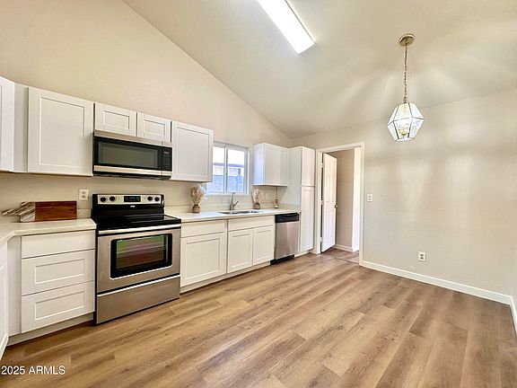Beautifully updated 4 bed, 2 bath single-story townhome with no HOA! Enjoy a brand new kitchen with quartz countertops, stainless steel appliances, and modern cabinets. New luxury vinyl plank flooring throughout and fresh interior paint make this home move-in ready. Blank slate backyard ready for finishing touches. Conveniently located with quick access to Loop 202 and just 15-20 minutes from hiking trails, parks, and museums. Perfect for buyers looking for style, comfort, and flexibility—without the HOA fees!