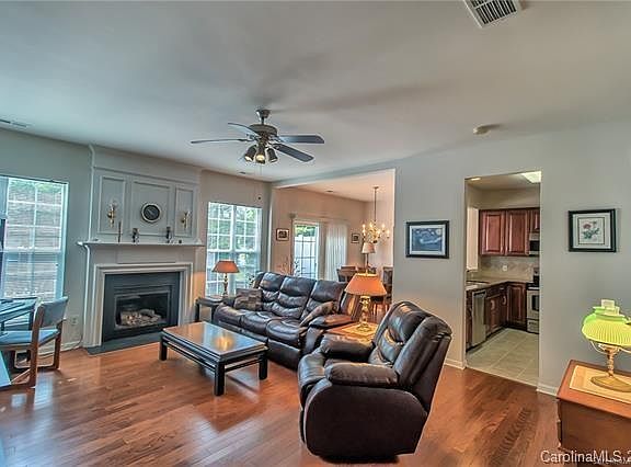 Pristine Townhome in the heart of Blakeney! Walking distance to shopping, restaurants and so much more! Beautiful hardwood floors, open floorplan, and tons of natural light. Kitchen with stainless steel appliances, tile backsplash and granite counters. Great Room with gas fireplace and separate Dining area leads out to the private patio. In the master suite you will enjoy the garden tub, separate shower, double vanity and HUGE walk in closet. Neighborhood pool is just a few short steps away!