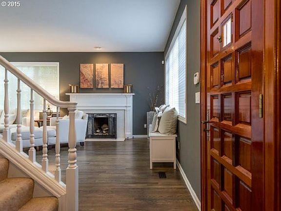 Breathtaking end unit Tudor with gorgeous updates throughout! Gourmet kitchen featuring granite counters & SS appliances. Formal dining & living room w/ French doors & gas fireplace. Spacious master suite w/ double closets & private bath. Beautiful hardwoods, high ceilings & large windows let light pour in. Stylishly remodeled baths. Designer finishes & custom paint throughout. 2 car garage. Large deck backing to tranquil green space.