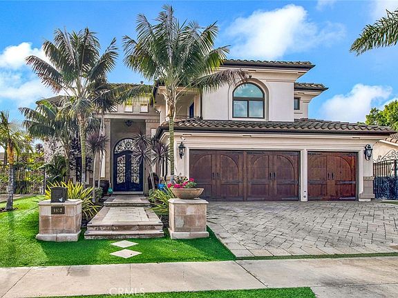 One of the Most Lavish Extraordinary Homes to ever come on the Market! No Expense was Spared in Creating this Spectacular 3,150 SQFT "Palace" w/4 Ensuite Bedrooms (1 Suite Downstairs), 4.5 Luxurious Bathrooms, Loft/Office, California Rooms (Additional 380 SF - not included in the 3,150 SF), Outdoor Living Rm Cabana w/Fireplace, Double Gated RV Parking, and 3 Car Garage that's Currently the Ultimate "Man-Cave" Entertainment Room w/Full Built-Ins (Can Easily be Converted Back). Everything in this Amazing Residence was Custom Re-Built in 2011 using the Finest Materials, Craftsmanship & Impeccable Attention to Detail throughout, truly an Architectural Phenomenon! It Boasts: Marble & Hardwood Flooring, Volume Ceilings, Exquisite Hand-Carved Coffered Ceilings, Crown Molding, Corbels & Casements, Fine-Furniture Quality Custom Built-In Entertainment Centers w/Surround Sound in Family Rm & EVERY Bedroom, Lavish Chandeliers, Recessed Lighting, Dual Pane Windows, Custom Window Treatments, Venetian Plaster, Solid-Wood 8-Foot Interior Doors, Limestone, Quartz & Granite Countertops, Chic Designer Fixtures, 4 Walk-In Closets w/Custom Organizers & Auto Lighting. It is a "Smart Home" w/Built-in Speakers, Cameras, Music, Lighting & Multi-Media System that can be Accessed Anywhere in the World through Smartphone. It Features one of the most Stunning Entries one could ever Envision w/Custom Wrought Iron & Hardwood Double Entry Doors & Dramatic 2-Story Foyer w/Imported Stone Sweeping Staircase w/Custom Wrought Iron Railings. Flawless Transitions from Indoor to Tropical Oasis Outdoor Lifestyle through Luxurious Bi-Fold Glass Walls. California Rm w/2nd Kitchen, Quartz Counters, Center Island w/Seating adds to the Level of Entertainment Perfection. Every Rm is Oversized. Every Square Inch of this Home is Magnificent! Formal Living Rm Includes Built-In China Hutch & Chic Wall-Mounted Electric Fireplace on Wall. Chef's Kitchen is Open to Stunning Family Rm and Includes Limestone Counters, Travertine Backsplash, Huge Center Island w/Wrap-Around Seating, Breathtaking Custom Cabinetry, Bay Window & Professional Viking Stainless Appliances. The Primary Suite Boasts Bay Window, 2 Walk-In Closets & Spa-Style Bathroom w/Jetted Soaking Tub, Separate Shower, Sit-Down Vanity, & Dual Sinks. This Estate is a Definite "Must See." Steps to Mile Square Park. Close to Award-Winning Schools, Shopping, Dining, and Beach.
