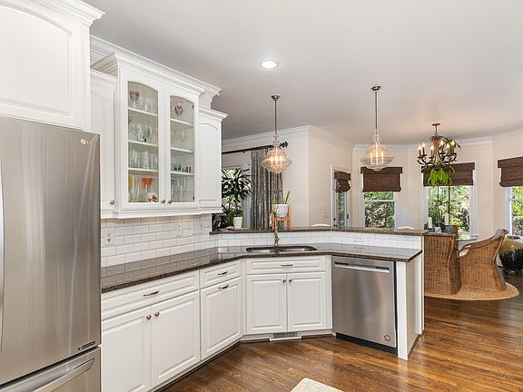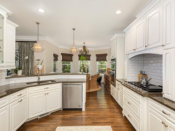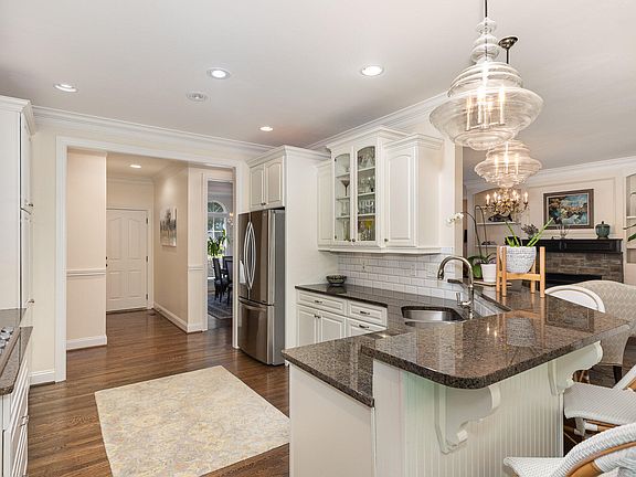 Come step inside this stunning home located in the coveted Porto Fino neighborhood in Wake Forest. As soon as you enter, you'll find yourself surrounded by elegance. Gleaming hardwood floors lead you through the spacious main living areas. The family room features a stone gas log fireplace and built-in bookshelves with windows overlooking a bright and airy sunroom. Additionally, you'll find a separate living area at the front of the house perfect for a home office or tv room. The dining area is separated from the main living area by architectural arches and features detailed woodworking. The meticulously renovated kitchen, includes granite counters, refinished cabinets - some with glass display doors - beveled subway tiles, and top-of-the-line appliances including a 5-burner gas stove and wall oven. There is a breakfast bar and a large breakfast nook with boundless amounts of natural light thanks to the large windows. The main floor primary suite is a luxurious retreat and boasts a lit double tray ceiling and walk-in closet. Large windows allow for plenty of natural light. The fully updated primary bath features a walk-in seamless glass shower, separate soaking tub, and dual vanities. Two well-sized guest bedrooms, each featuring their own walk-in closet, are also located on the main floor and share a Jack-and-Jill bath. The newly finished upstairs is over 1,300 square feet!!!! Complete with HUGE projection screen, as well as a cocktail bar, making this unqiue space perfect for entertaining. An additional bedroom on the second floor with an upgraded full bathroom provides plenty of space for guests or extended family members. The two-car garage has it's own HVAC heating and cooling system, with epoxy floor and New Age cabinets. Outside, the private backyard oasis is beautifully landscaped and features a built-in outdoor grill and stone patio, truly making this home your dream home come true in every way imaginable.
