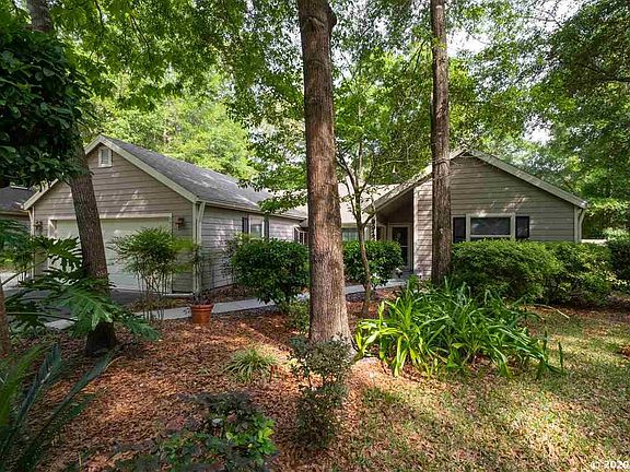 Don't miss this gem in Haile Plantation's Lexington Farms! This 3 bed/2 bath, split-plan home has gorgeous vaulted ceilings, crown molding and wood-looking tile throughout. The spacious family room includes a stone-faced electric fireplace and an additional well-lit living space includes a granite island, extra storage, sink, mini fridge and its own separate Daikin ductless heat and AC. The beautiful kitchen features granite countertops that continue in the bathrooms, upgraded lighting, Maytag Gas convention range and convection microwave, a breakfast nook and all stainless steel appliances. Outside, find a fenced and landscaped yard with irrigation systems and a stone walkway and patio. Enjoy a covered patio with tv access and a workbench in the garage. Plus, this home comes complete with a Ring doorbell, security system, Low E Pella windows, termite policy and a newer hot water heater. You'll love being minutes from Haile amenities and walking trails plus Village Center restaurants and shops with close access to Celebration Pointe and more. Owner is a licensed real estate agent in the state of Florida