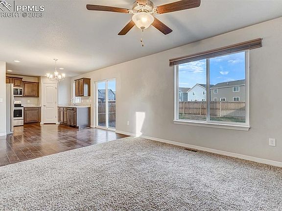Lorson Ranch Gem! The entryway of this home has high ceilings and wood flooring... a great way to welcome guests! The living/kitchen/dining is open with a walk-out to the back patio and spacious fenced yard! The kitchen is equipped with stainless steel appliances, plenty of counter space and a great corner pantry. The upper level has the primary bedroom with an adjoining bathroom and walk-in closet. Also upstairs are two additional bedrooms with spacious closets. Laundry is conveniently located at the upper level. Located close to military installations, shopping & conveniences. Come take a look, we think you'll love it! Be sure to take the 3D virtual tour too!