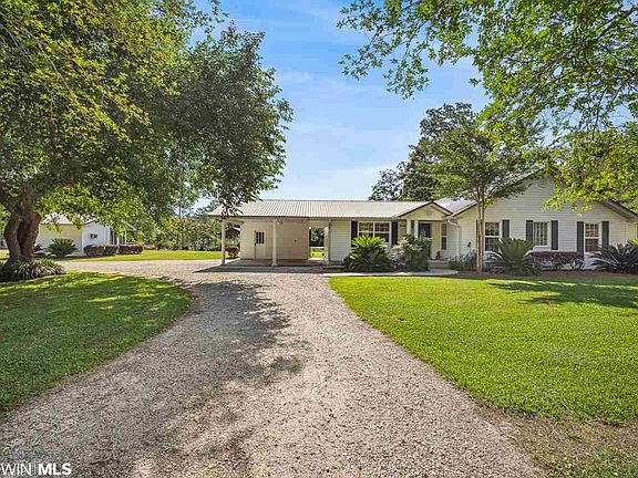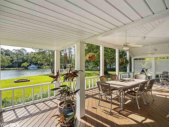 Highly crafted custom home - 3/2 - 1000 ft. of outside decking. the rear 14' wide covered deck gives this home a comfort anyone would love. Effective build date is 1998 but was 85% rebuilt in 2005. Everything but the basic frame was put in new including all wiring, plumbing, insulation, interior walls, windows and a 50 year metal roof. The interior is a masterpiece of materials and workmanship. Porcelain tile, cedar ceilings in kitchen and den, granite in kitchen and master bath, custom built sold cherry kitchen cabinets make this home a show piece. Custom lighting is featured throughout the home. Furnishings available outside sale. The boat houses each have boat lifts and a separate storage building for gear. Larger lift rated for 16,000 lbs/houses a 27' craft. 112'' of bulkhead for this lot. Kayak launch next to boat house. Hurricane Sally caused damage to floors and sheetrock - these areas are ready for reconstruction.