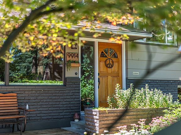 This captivating property showcases the distinctive charm of mid-century design while offering a host of modern updates and amenities to create an exceptional living experience.Step inside to a dedicated foyer adorned with characteristic slate tile flooring, setting the tone for the timeless style found throughout the home. Designed with entertaining in mind, the open main level boasts newly refinished Maple floors and a gas fireplace, creating a warm and inviting ambiance. A sliding glass door from the dining room leads to a generous patio, perfect for seamless indoor-outdoor gatherings this summer. The tasteful kitchen features travertine tile floors, stainless steel appliances, and a convenient breakfast bar.The upper level showcases hardwood floors throughout. The primary suite is a peaceful retreat, featuring a private balcony overlooking the tranquil backyard. Two additional bedrooms share a full hallway bathroom complete with a jetted tub.The lower level includes an expansive family room with tile floors, complemented by a second gas fireplace. This level also provides space for hobbies, a third full bathroom, and a laundry room.This remarkable property goes above and beyond with its additional finished spaces: a detached music studio with soundproofing and a detached office that is perfect for remote working.Enjoy outdoor living at its finest with a greenhouse to nurture your gardening passion, a hot tub, a custom wall crafted from recycled Portland sidewalks, a covered patio for year-round enjoyment, and xeriscape landscaping.