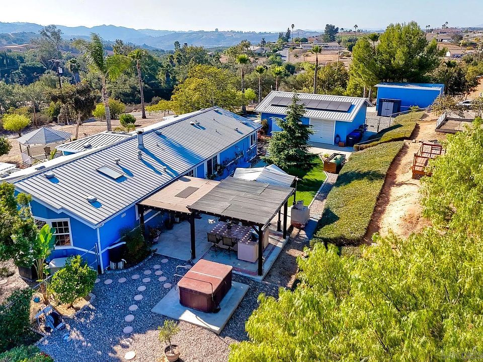 Nestled atop a scenic hill, this exceptional property offers breathtaking panoramic views of rolling hills and stunning sunsets. The beautifully updated home boasts a spacious kitchen with ample storage, a central island, and modern finishes, all enhanced by vaulted ceilings and an abundance of natural light. Solar panels provide energy efficiency, adding to the home’s appeal. A thoughtfully designed layout includes a fenced area between the garage and house, perfect for pets or children.