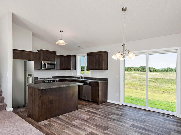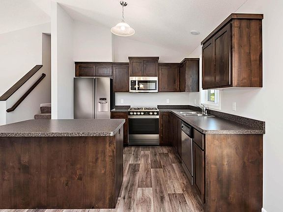 The main level features three bedrooms, two bathrooms and an open entertaining area highlighted by an upgraded kitchen with a stunning breakfast bar island and stainless steel appliances. The adjoining dinette is spacious and bright, and features a decorative light fixture, modern plank flooring and recessed lighting. A built-in computer nook near the kitchen makes a perfect homework station. Vaulted ceilings and abundant windows add appeal to the large family room. Unwind at the end of a long day in the private owner’s retreat, which features a spacious bedroom with a window overlooking the backyard. Bedrooms 2 and 3 each include spacious closets and windows overlooking the front of the home. Additional features of this home include a 3-car garage and unfinished lower level prepped for future buildout of a game room, fourth bedroom and third full bathroom.
