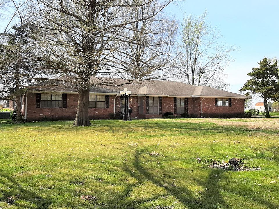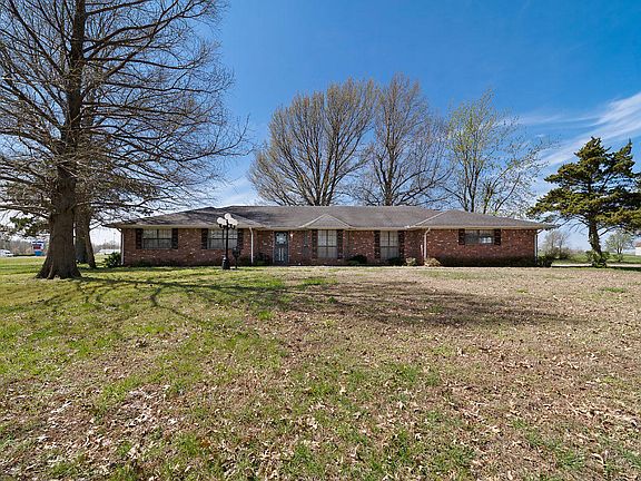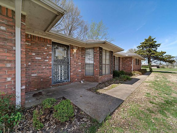 This property features a full brick home located on 5 acres East of town, includes 3 bedrooms, 3 full bathrooms, two living areas, 2 car attached garage, 2 bonus rooms (one is a guestroom just doesn't have a closet, and 2740 square feet of living space. This home has open concept living with a large kitchen island and highlighting the space is a wall to wall brick fireplace. The oversized master suite includes three walk in closets, a large linen closet, double sinks and vanities, and a separate shower and tub. Heat and air replaced in 2020. New roof installed late 2021. Huge 6x10 above ground storm shelter rated to withstand an F5 tornado in the garage. If you dream of that home that sits just outside of town, this is the home for you! Septic System upgraded to a new Aerobic system in June 2022. New Calibamboo plank flooring throughout the house. Updated lighting throughout the house. Nice gazebo in the back beside 2 large oak trees.