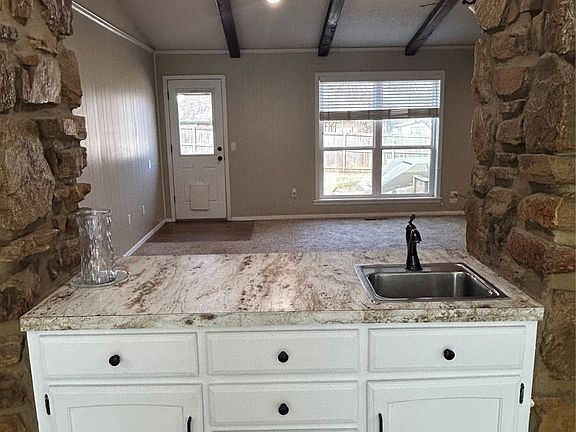 Adorable home featuring 3 bedrooms, 2 bathrooms, huge kitchen, large living area with vaulted ceiling and beautiful wood beams. This home sits on .26 acres with a large back yard featuring an in-ground storm cellar. New Hardie exterior siding and paint in 2020, new hot water heater in 2021, new interior paint 2025.