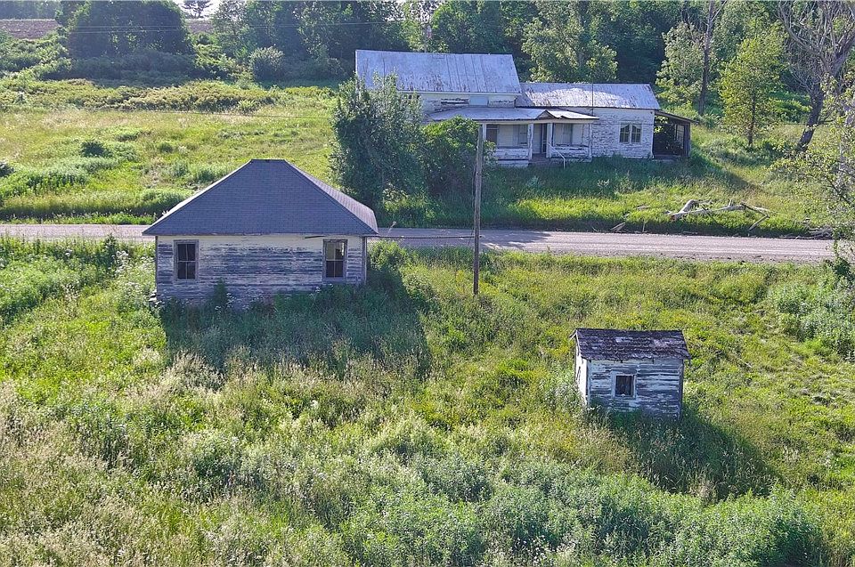 Discover the possibilities with this unique property offering over 21 acres on a single tax parcel, split between both sides of the road. On one side, you'll find open, tillable land for farming or recreation, a small outbuilding and well house. On the other side sits the farmhouse being sold AS-IS with all faults, ready for foundation repair, renovations, rebuild or removal.