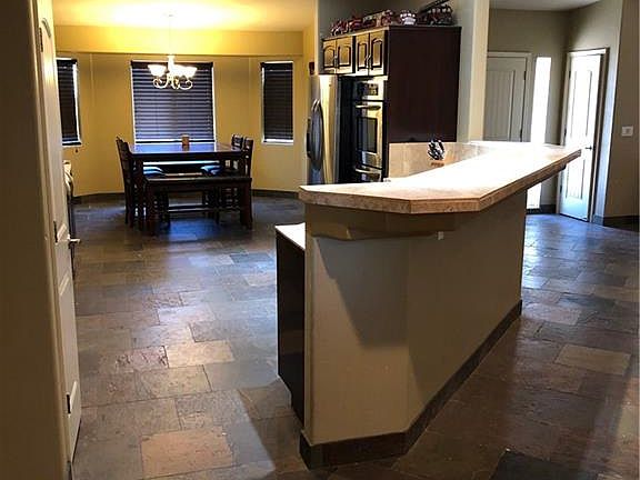 This is a beautiful custom built home with slate floor tile in rooms except for master bedrooms, and counter tops in kitchen and bathrooms are Travertine tile. Open floor plan with two master suites, and a bedroom that can also be an office or exercise room. Large master bedroom with wood burning fireplace, walk in closet, and master bath with tiled shower and jacuzzi tub. There is also a wood burning fireplace in the living room. Large casual dining area off kitchen. All stainless steel appliances stay with home, including the double oven. There is a mini-wet bar off the kitchen area with refrigerator built in. Guest hallway bath has tiled shower, and 2nd master suite bathroom also has a tiled walk in shower. Large 3 car garage with built in shelves and cabinets. Landscaping needs a lot of work. At the present time there is no landscaping in front or back. The 2nd master bathroom counter top needs tile replacement on the front. Seller is in the process of painting the 2nd master suite bedroom. There is a child's play set in the back yard which will be taken when home is sold. Carpeting in both master suites. Laundry room inside hallway and washer and dryer will stay. Great views from the front and back yards and is close to the golf course at Valle Vista.