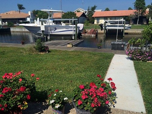 Complete info: http://9915sanmateoway.AgentMarketing.com - Pristine Florida living by Gulf of Mexico. Waterfront home with new boat lift, floating dock. Lagoon has Gulf access. Three bedroom home with fire place. New Windows, new sliding door, new roof, three car driveway at wide two car garage. New A/C. Enclosed Florida Room, watch sunset, boats, fish... Truly remarkable home. Make it your dean home today.