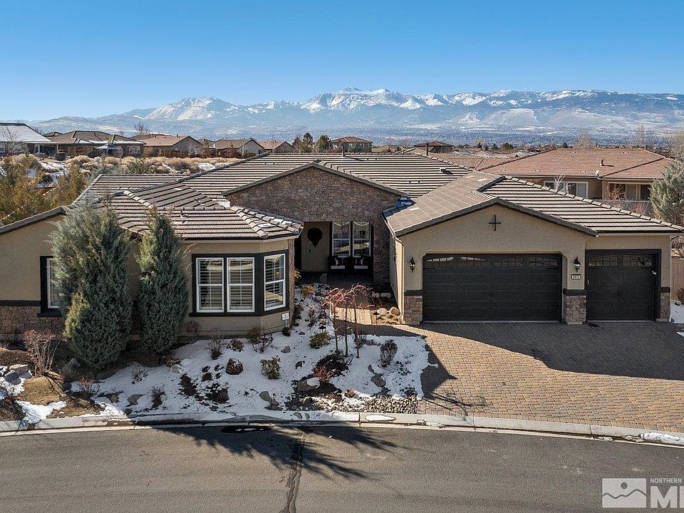 *OPEN HOUSE SAT 2/8 10-1PM. Welcome to Saddle Ridge in Damonte Ranch, a prestigious gated Community offering an unparalleled lifestyle in a prime location. This exquisite and popular Airmont plan with 4241 SF, sits on a spacious half acre lot offering unobstructed views of Mt. Rose and the Sierra Nevada Mountains. Designed for both comfort and elegance this home features an open floor plan with high end features inside and out and expansive living spaces perfect for easy living and wonderful entertaining., These Sellers thought of every way to enjoy the best of Reno luxury living. Start with a 40'X20' heated Salt Water Pool w/automatic cover, a top of the line Bullfrog Spa, a huge covered pavered patio with lighting and ceiling fans, plus 3 raised flower/vegetable beds with independent watering systems. This stunning home is surrounded by lush, easy care landscaping with mature trees and shrubs, automatic lighting and a serene water feature--creating a peaceful and private outdoor retreat. Over $250k in after market upgrades were added including custom cabinetry in the dining room and kitchen nook, custom glass at the entry and office, additional shelving in the pantry and garage, Custom closets throughout, and phantom screens on the triple slider. There are so many upgrades and builder options, too many to mention here but please see the full lists located under the D tab. This exceptional home is just minutes from top-rated schools, premier shopping, dining, two Hospitals and the Reno/Tahoe Airport. Enjoy resort-style amenities, including a clubhouse with a fitness center, pool, tennis and pickleball courts, basketball and a park. Outdoor enthusiasts will love the miles of walking and biking trails surrounding the neighborhood. Plus, 5 world class ski resorts, golf and the breathtaking beaury of Lake Tahoe are all within minutes as well. This beautiful Home offers both convenience and luxury. Don't miss this incredible opportunity to live in one of the most sought after communities in South Reno!
