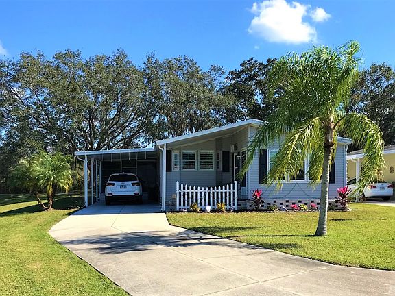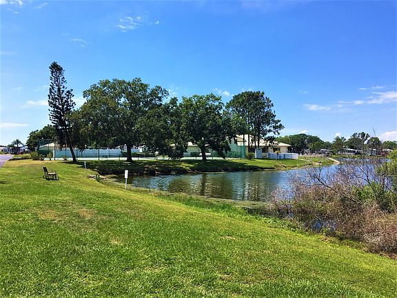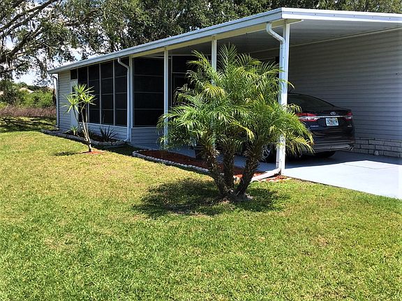 (NO FINANCING CASH SALE ONLY!) Double wide mobile home, 1992 Fleetcraft, 1300 eq. Ft with light gray siding. The monthly rent is $624.00. The home is on a great end lot next to a lake with one neighbor on the other side and no neighbors behind it, just a shaded area with trees. It has two bedrooms, 2 bathrooms, living room, kitchen, dining room, laundry room, and sunroom with crown molding and painted in neutral colors. The storage shed is on the backside. The vinyl screened lanai is situated beyond the carport and completes it with a nice view of the water. The kitchen has loads of storage. The sunroom can be used as an extra bedroom, den, or office. The home has laminate flooring and ceramic tiles throughout. Most of the rooms are equipped with ceiling fans and there are four fire alarms. The carport and driveway are able to accommodate a few vehicles. There's a patio outside the sunroom to have your morning coffee or evening beverage. Steps to the clubhouse and swimming pool are all within walking distance. Included appliances are a French door stainless steel fridge, dishwasher, stove, washer, and dryer. Double pane glass windows with screens installed in 2019 in sunroom, living room, and guest bedroom. The shutter on the window was installed in 2019 in the kitchen, dining room, and master bedroom. Water heater 2016, Tie Does 2018, A/C and ductwork 2018, bathroom vents 2022. All listing information is deemed reliable but not guaranteed and should be independently verified through personal inspection by appropriate professionals. Integrity Mobile Home Sales cannot guarantee or warrant the accuracy of this information, measurements, or condition of any property. Measurements are approximate. Lot rent subject to change