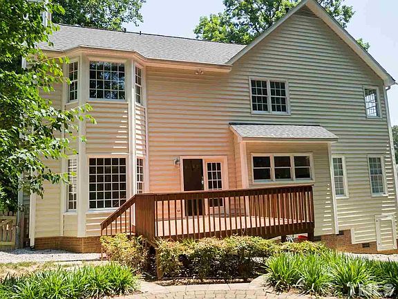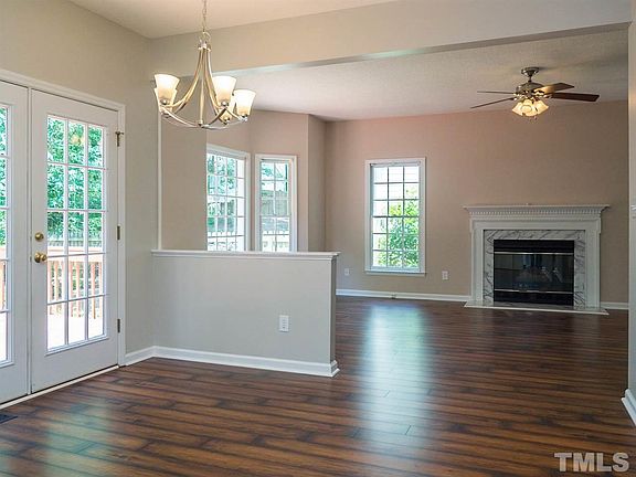 This Raleigh two-story home offers hardwood flooring, a fireplace, a uncovered deck, and a two car garage.