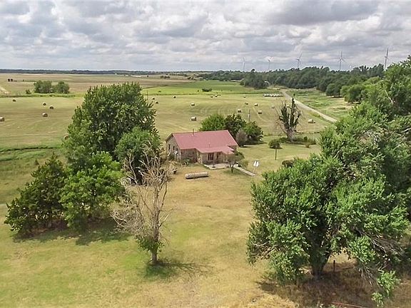 Sitting on a whopping 40 acres, this home in Calumet is awaiting its newest owner, and that could be you! Offering three bedrooms and a bathroom, this adorable home showcases an abundance of natural light throughout. As you step inside, you are greeted by the spacious open living room and dining space. The kitchen features stained cabinetry, storage space, and wood floors for easy cleanups! Relax underneath the covered patio and enjoy a beautiful Oklahoma Sunset. Your 40 acres are perfect for farming, planting crops, or just having all the peace. There are a few storage sheds and barns on the property. You won't want to miss your chance to call this one "Home"! Schedule your private tour today!