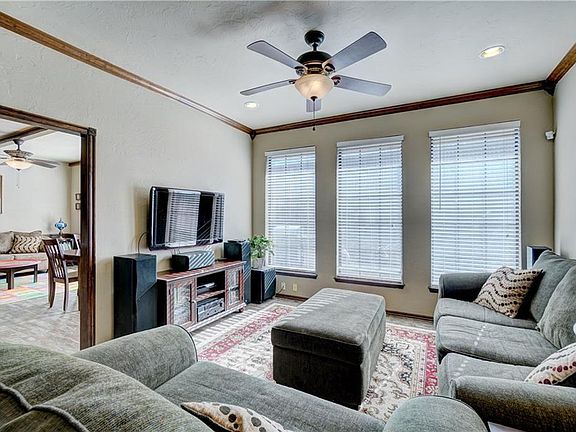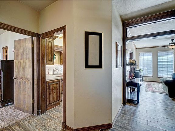 Beautiful custom home with tons of rich wood built-ins, beams, and trim. Large plate glass windows in the second living room. Very bright fresh home with timeless paint colors throughout. New whirlpool gold appliances, kitchen and bathroom counter tops, kitchen backsplash just to name a few! Recently installed wood look tile complements the homes character while adding to the durability. Gorgeous new front door with glass insert. Storm doors on front and back doors. Above cabinet lighting in kitchen. Tons of counter space. Fireplace with gas logs for instant ambiance. Storm shelter in the garage as well as build in work bench! Don't miss out on this beautiful home in a great location!