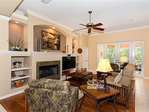 Owner willing to do lease back, buy while pricing & interest rates are low. Charming Arthur Rutenburg home located in the highly sought-after maintenance-free area of River Club that includes a community pool. 3 bed, 2 bath, bonus room/office & on a beautiful, preserve lot w/an abundance of privacy. This pristine home offers cathedral ceilings, crown molding, plantation shutters, hardwood floors, tile, carpeted bedrooms & ceiling fans in every room. Chef's kitchen w/double ovens, gas stove top, built in wine refrigerator, cabinet pull outs, granite countertops & large composite sink. Breakfast area w/bay windows overlooking the pool area. French doors off kitchen & great room leading to pool area. Separate dining area is open & spacious. The great room has a beautiful built-in entertainment center that includes a gas fireplace & surround sound. The master suite has sliding pocket doors into an elegant master bath w/quartz countertops, bronze faucets, dual vessel sinks & roman shower. Large walk-in closet in Master suite w/tiled floors. Master has sliding doors to the gas heated pool & spa w/outdoor shower that runs hot and cold water. Screened in pool area has beautiful tile pavers & built in gas Bull Grill. Landscaping behind pool area is lush & tranquil with all types of indigenous Florida plants. Tankless hot water heater is an efficient addition. Large 2 car garage w/ceiling mounted & wall shelving for storage. For an additional fee River Club has amenities that include golf & tennis