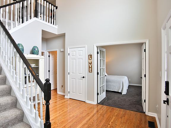 This gorgeous home is located in the heart of the desirable neighborhood of Springhurst. Completely updated and meticulously maintained, you'll fall in love with this 4 bedroom, 2.5 bath open-concept home. Vaulted ceilings and natural light fill this home, making it open and welcoming. The white, modern eat-in kitchen is open to the family room, boasting a vaulted ceiling and plenty of space for large family gatherings. The first floor powder room was recently fully updated and includes beautiful shiplap! A first-floor laundry room and connected 2-car garage make this home convenient and functional. The large master bedroom with an en-suite and 3 additional bedrooms and a full bath are located on the second level. Some of the updates to highlight in this home include the kitchen, all baths, fresh paint, the windows, the roof, and the water heater. A beloved feature is the fully screened-in back porch that allows views of the large, level backyard with mature trees and a firepit. Additional living space potential in the large, dry basement that has tall ceilings and a radon mitigation system in place. Located very close to neighborhood amenities which include the community pool, playground, and tennis courts. This move-in ready home is conveniently located near grocery stores, shopping, dining, and the cinema. Don't miss this amazing home!