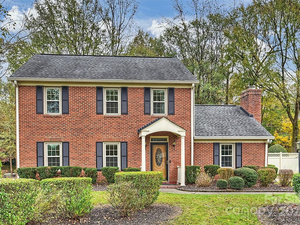 Gorgeous full brick home on a private, scenic lot in the heart of Ballantyne! Featuring wood floors on the main level and upstairs hallway, this stunning home offers a large, eat-in kitchen with scenic backyard views, den with vaulted ceiling and fireplace, a formal dining room, and an expansive living room. Three spacious bedrooms on the upper level, primary suite with large, walk-in closet, and primary bath with dual vanities and water closet. Bedroom 2 features an ensuite bath with walk in shower! The rear yard has a six foot privacy fence, an outdoor storage closet and shed, irrigation system, and an expansive deck for outdoor enjoyment.