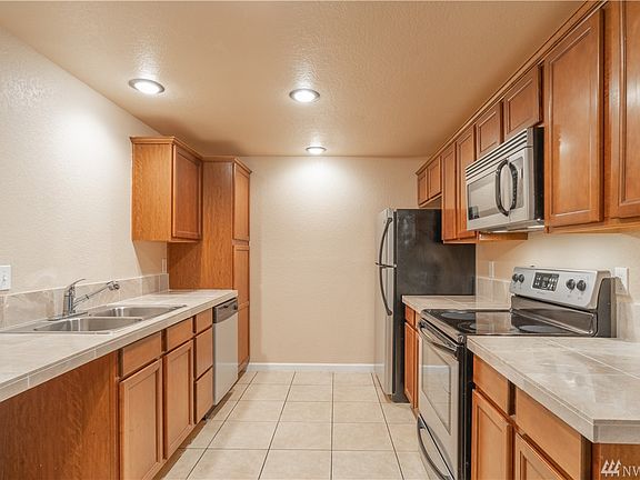 Updated Ground Floor Condo w/ Handicap access. Recently remodeled; paint, carpet, ceiling fans, doors & moldings. Updated kitchen with Granite, SS appliances and elegant cabinets. Both Master Bedrooms have updated full baths with tile floor, counters & bath surround. Large front/great room with adjacent slider to covered patio & grassy area. Well managed Gated Community w/ assigned carport & guest parking. All appliances included. Convenient location close to Boeing, shopping and schools.
