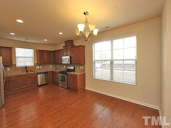 Beautiful End Unit Townhome, Great First Floor Master with private bath and walk in closet. In the heart of Brier Creek. Tons of windows and lots of light. Two large bedrooms and a bonus room on the second floor, could be loft or multi-purpose area. Upgraded gas range, kitchen faucet and granite tops. Built in microwave. Beautiful hardwood floors on main floor. Sprinklers throughout. Home is pre -wired for security system, smoke and carbon monoxide systems. Sprinklers throughout the home.
