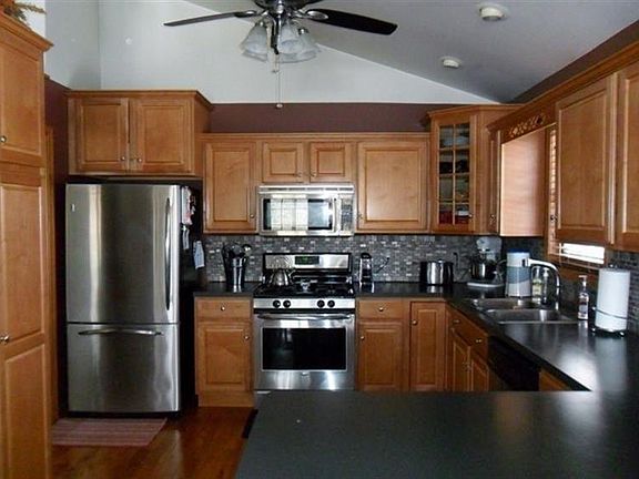 Custom 4 bedroom bi-level on almost 1.5 acres! Love the outdoors? This home is awesome! Attached 3 car garage and detached 1.5 car with fire pit area. Walk in to find the main level foyer and office/library with glass french doors. Notice the beautiful wood work and 6 panel doors. Upstairs there are vaulted ceilings, an immaculate kitchen with pull out drawers, over hang countertop with seating, tiled backsplash, maple hardwood, tons of room for the table, and sliding doors to deck. Upstairs master bedroom has extra hotel style sink, vaulted ceiling, access to full bath, and custom closet organizer. There is another possible master bedroom on lower level with two closets (one a walk-in), and gracious full bath with whirlpool tub, separate tiled shower, and lengthy counter top. Secondary office on lower level w/glass door. Appliances can remain with acceptable offer, 8 person hot tub (under deck) stays, and home warranty included. Survey stakes in place and partial fence on south side.