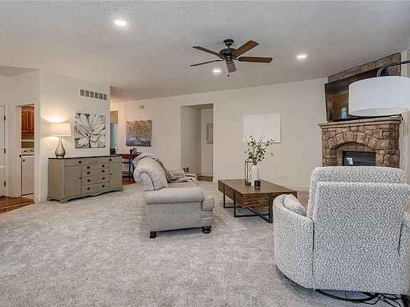 - Features: Carpet, Ceiling Fan(s), Fireplace