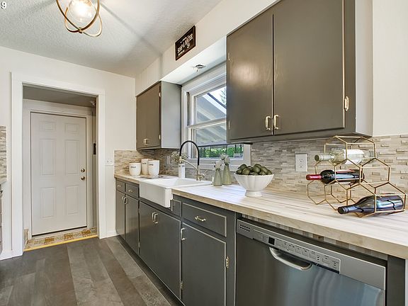 BOM no fault of home. Fully remodeled Mid-Cen Farmhouse on fab PVT flat lot w chicken coop large veg garden and back lot, 2-BDRMS on main w/original HDWD FLR, 3-brm & bonus on 2nd LVL, tons of storage, kitchen w/new SS appliances, hardware, butcherBLK counters, stone backsplash and daz-lighting, modern bath w hand painted tile FLR, new SHWR/tub & sliding frameless door, large shop, possible ADU, minutes to Portland/Sellwood/Woodstock