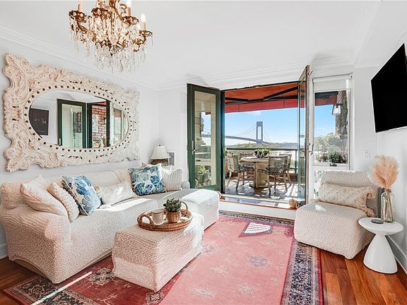 Experience unparalleled elegance in this meticulously designed 3 bedroom apartment nestled in the heart of Bay Ridge! This sophisticated home featuring unobstructed year-round views of The Narrows Waterway, The Verrazano Bridge and The Manhattan Skyline perfect for enchanting evenings and awe-inspired mornings with its 2 large, front facing rooftop balconies with custom awnings and IPE wood deck flooring! Private Elevator opens directly into the apartment where you will find a beautiful chefs kitchen with high-end appliances, a center island and ample counter and cabinet space. Open floor concept with living room and dinette area along with new Brazilian floors and elegant custom moldings throughout! Primary bedroom is king-sized with en-suite full bathroom, large custom built closets and a private balcony with views of the City Skyline. Second bedroom boasts a king-sized bedroom with exposed brick fireplace with custom French-style mantle and beautiful door opening out to your private rooftop balcony. The third bedroom is truly a bonus - full-sized with closets and window! 8 large custom closets throughout the apartment, one containing a full-sized washer/dryer Residents enjoy an on-site fitness center and a 24-hour Cyber Doorman. Deeded parking and oversized storage unit included!!